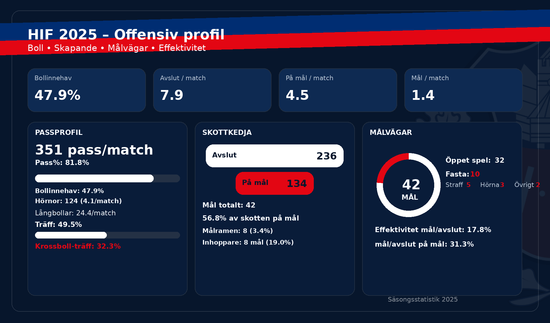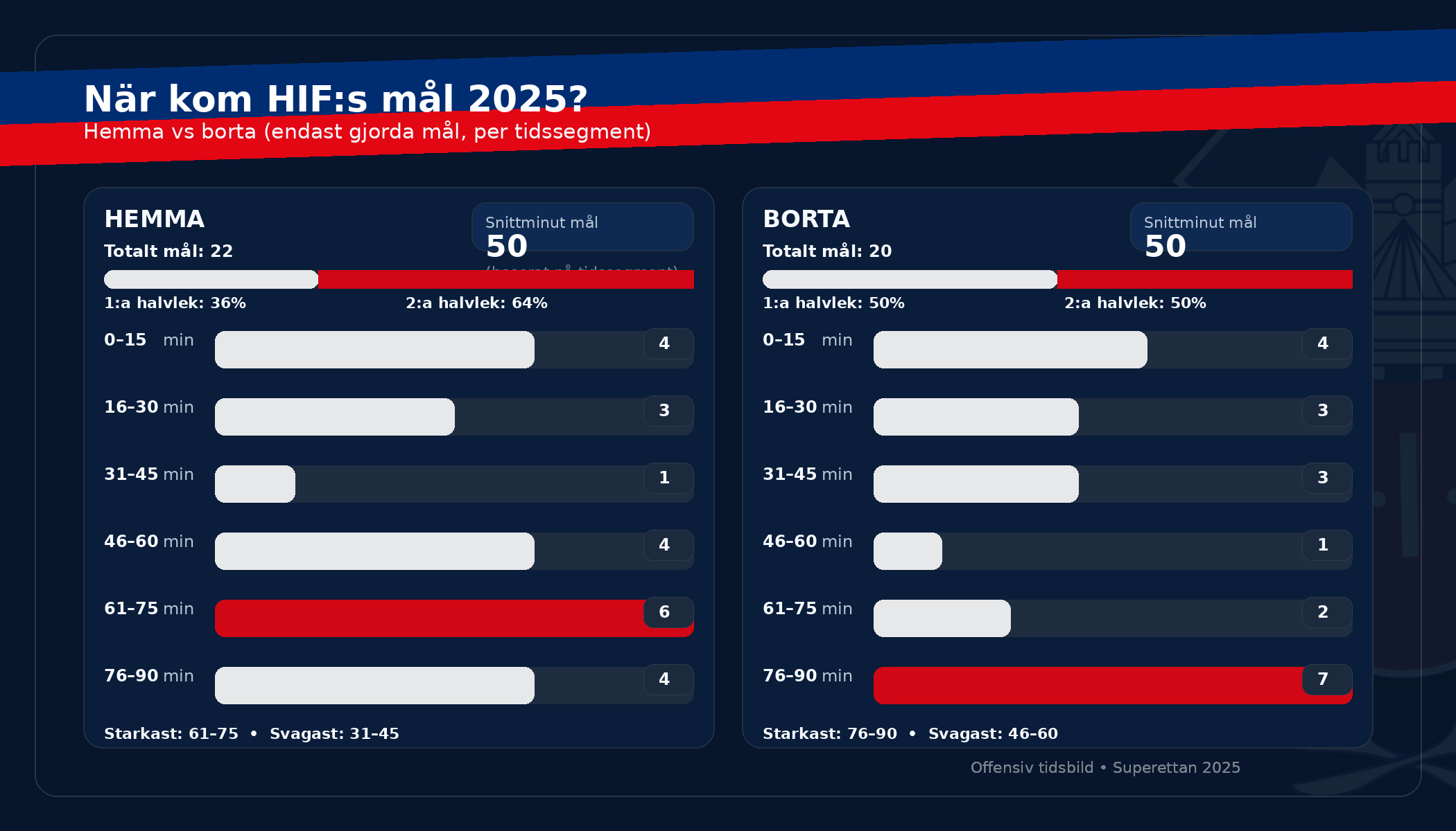 HIF:s målbild 2025 var ganska tydlig: hemma kom många mål efter paus. Det kändes ofta som att laget behövde tid för att spela igång matchen, och att man blev farligare när andra halvlek drog i gång och ytorna blev större.