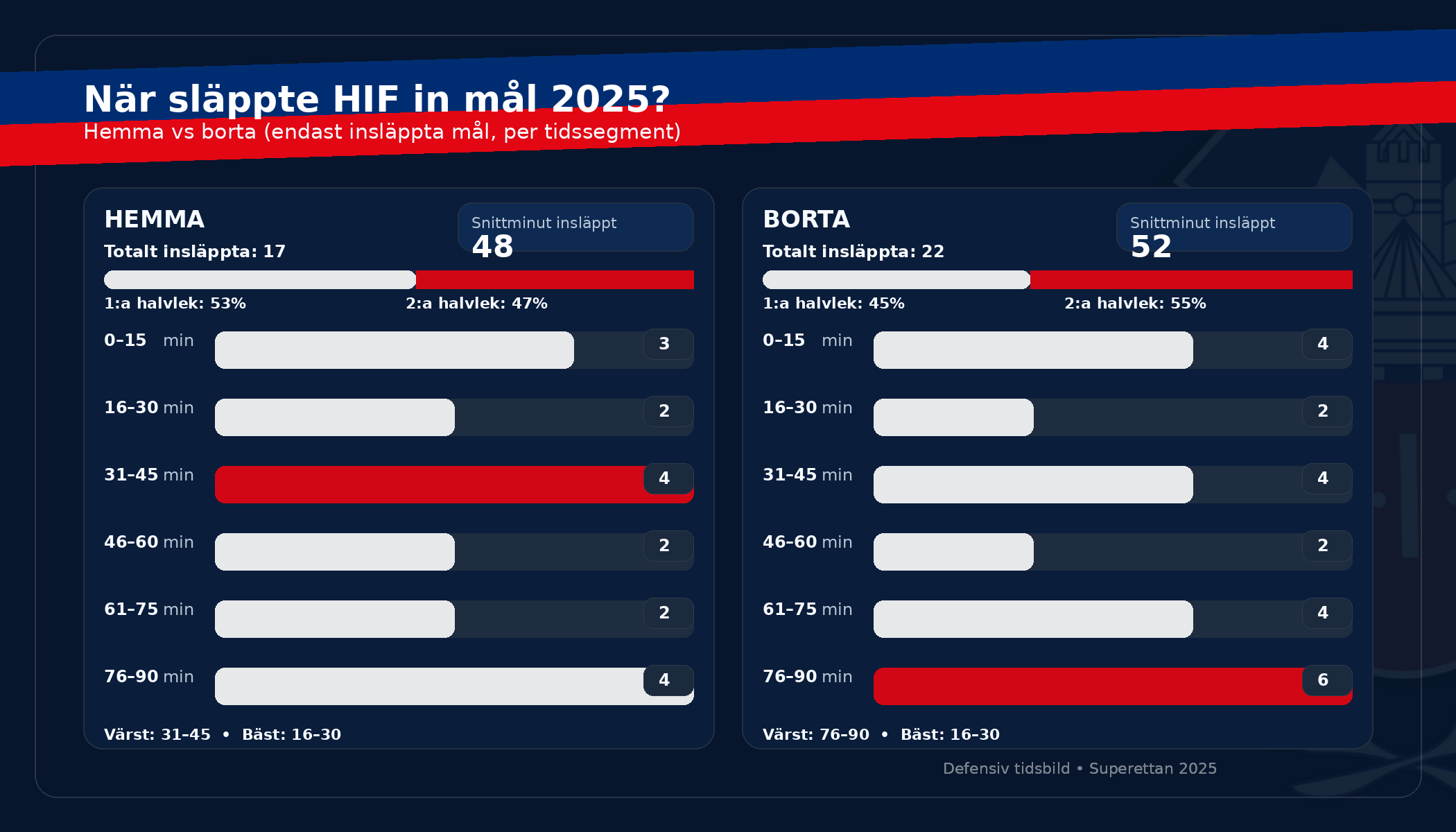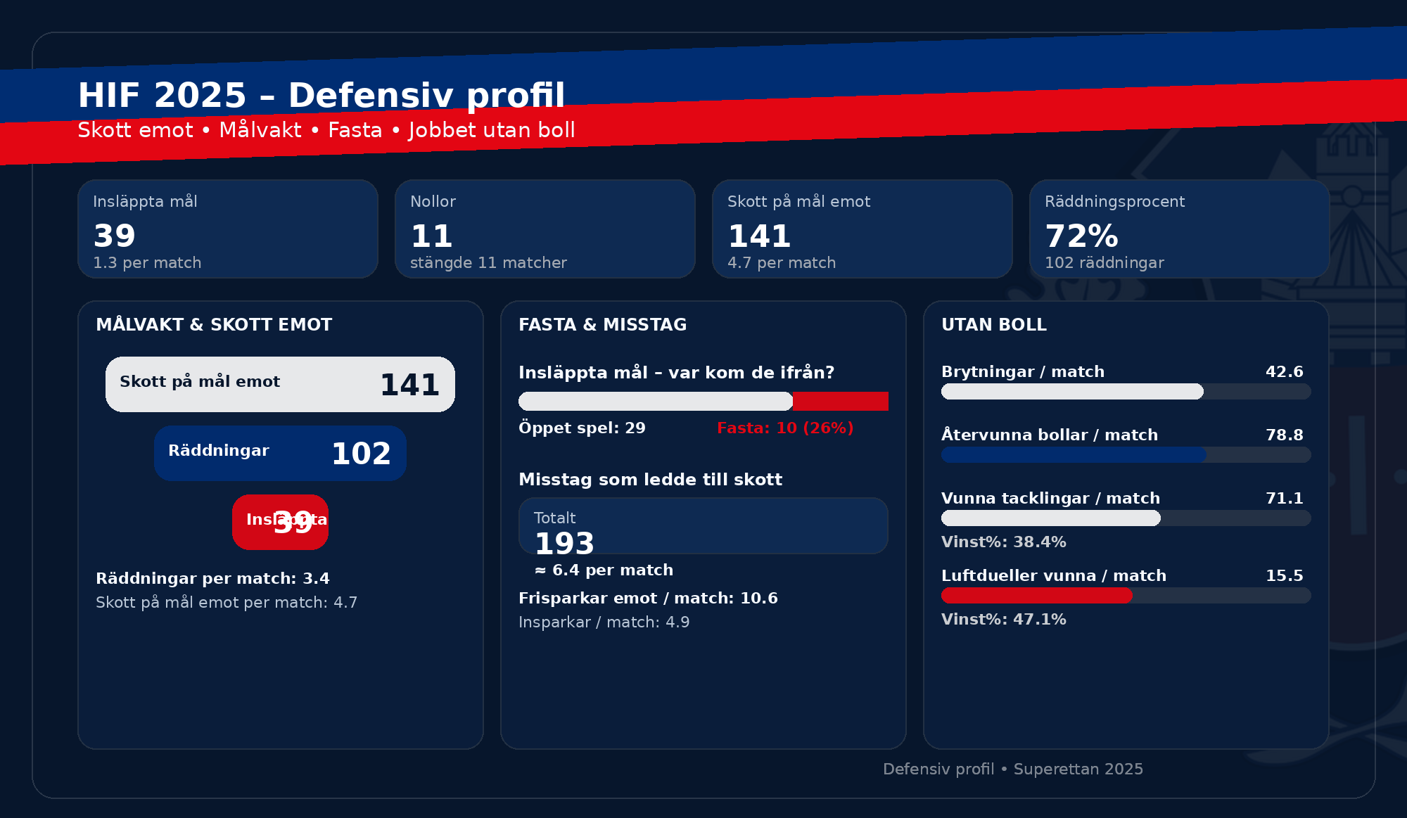 Men oavsett plan var det samma känsla i siffrorna: HIF kunde stå rätt länge och försvara okej, men det räckte med några minuter med slarv eller dåliga beslut för att allt skulle rasa.