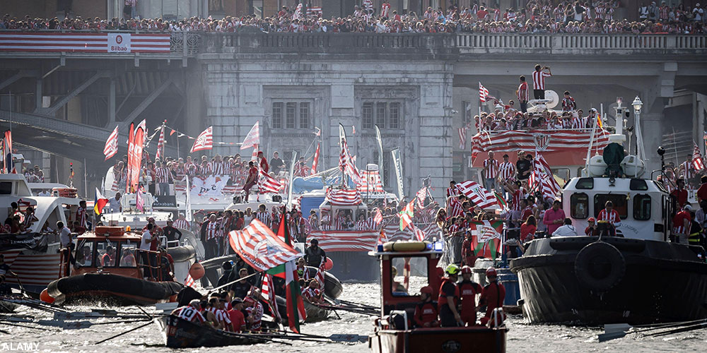 Athletic firar Copa del Rey-titeln 2024 med båtparad i Bilbao.