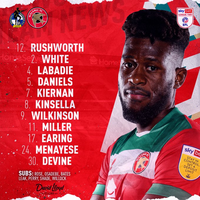 Det ser ut som att det blir den vanliga 4-2-3-1 uppställningen med Carl Rushworth i mål. En fyrbackslinje bestående av Hayden White, Rollin Menayese, Donelvan Daniels, och Reece Devine. Två centrala mittfältare i Liam Kinsella och Joss Labadie. Framför dom en trio offensiva mittfältare med Conor Wilkinson, Jack Earing och Brendan Kiernan och ensam på topp finns George Miller.