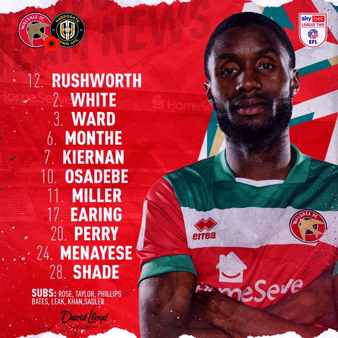 Snart är det dag för avspark i dagens match mellan Walsall och Harrogate Town. Matt Taylor har tagit ut en förväntad startelva och går tillbaka till den som presterat bäst under oktober månad. Förhoppningsvis ska man prestera bättre än man gjorde mot Forest Green i onsdags.