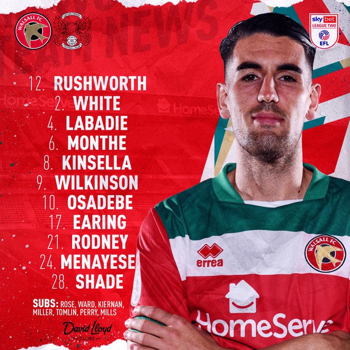 Walsall gör två förändringar i laget mot Layton Orient jämfört med förra lördagens match mot Salford City.