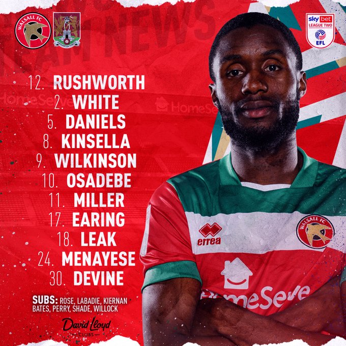 In i startelvan går mittbacken Tom Leak och offensiva mittfältaren Emmanuel Osadebe. Detta innebär att lagkapten Joss Labadie och yttermittfältaren Brendan Kiernan får ta plats på bänken.
