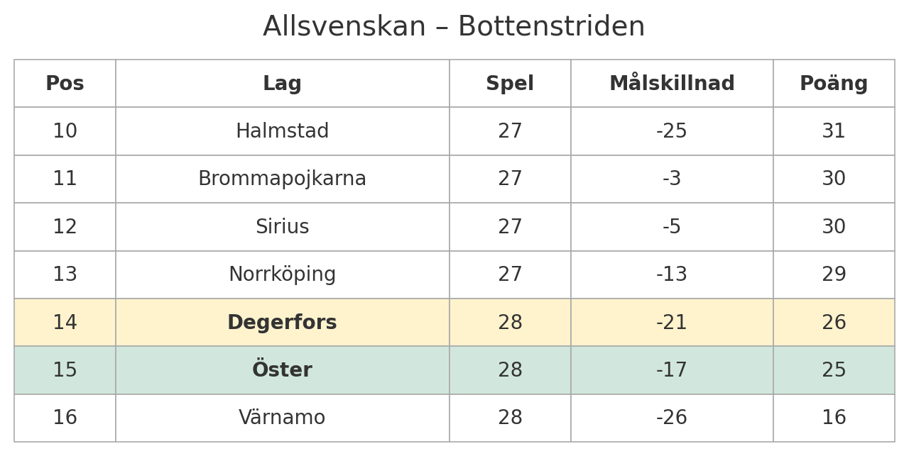 Kampen i botten har bara börjat. Degerfors fick andas ut för stunden, medan Öster får samla ihop sig inför nästa match i den här överlevnadsstriden. Inget lag är säkert, allt står på spel. Kvalplatsen ligger där som en sista livlina, och det kommer bli en kamp full av nerv, vilja och dramatik hela vägen in i mål. Det här är inte slut – det är nu det börjar på riktigt.