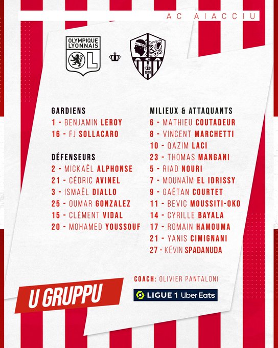 Leroy - Diallo, Vidal, Gonzalez, Alphonse - Nouri, Marchetti, Mangani, Bayala - El Idrissy, Hamouma