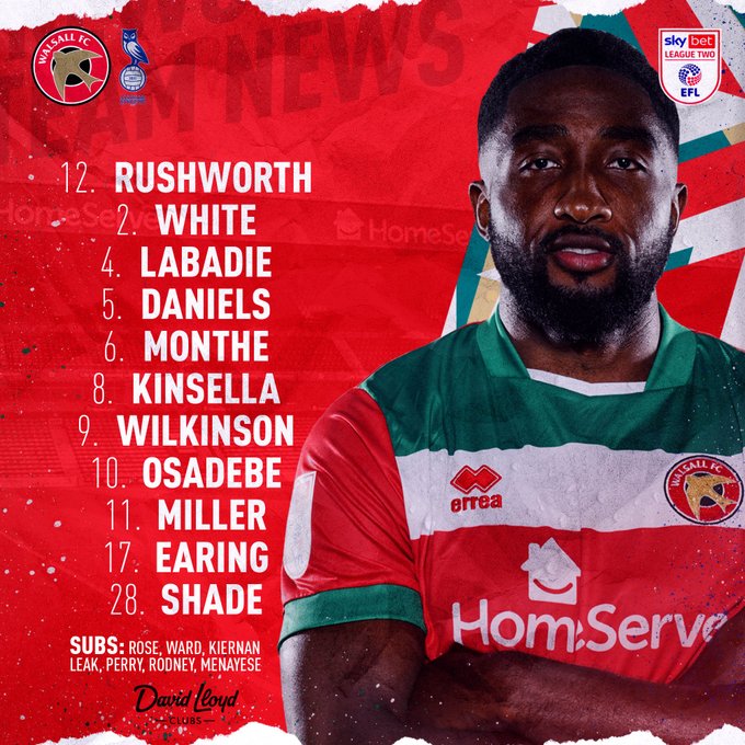 Samtliga spelare som spelade mot Sutton i lördags kommer till start i kvällens match mot Oldham Athletic. Det betyder att Michael Flynn kör vidare på 3-5-2 taktiken och att Emmanuel Osadebe och Tyrese Shade fortsätter att spela ytterbackar. Förhoppningvis ska offensiven på kanterna orsaka problem för Oldhamförsvaret och Walsall få möjlighet att få in några mål och stänga matchen tidigt.