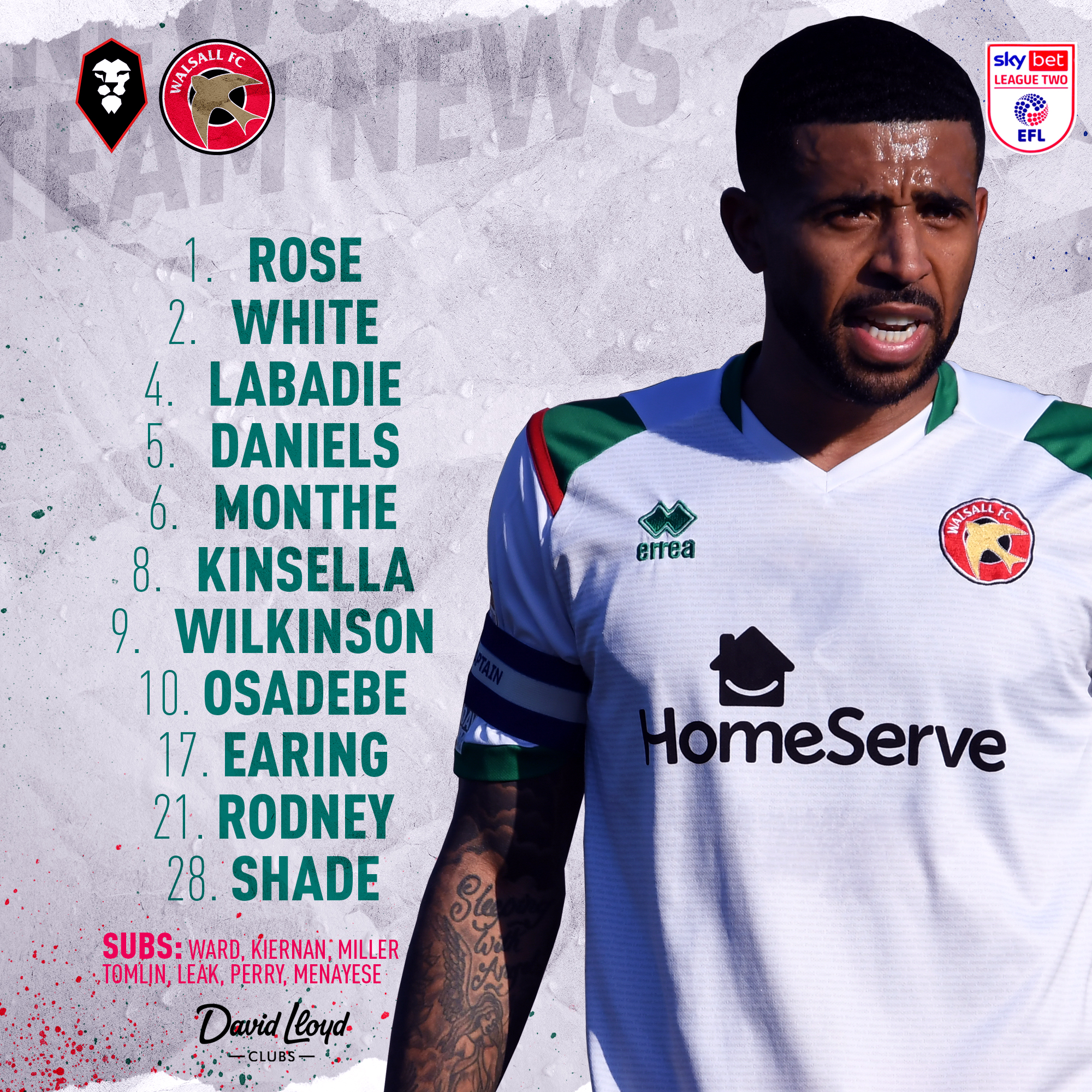 In i mål kommer Jack Rose eftersom Carl Rushworth är på landslagsuppdrag med Englands U-21 landslag.